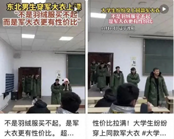 可为什么军大衣会被当代大学生抢购成潮流呢?这跟社交媒体的发酵有关。大学生群体相对而言,经济实力较差,购买力来源于家庭。这种传统保暖的棉服军大衣,虽然样式单调,但胜在价格便宜。大学又是一个相对封闭的区域,跟社会接触较少,审美不需要过于赶潮流,自己穿着暖和就行了。社交媒体的发酵,则带动了当代大学生对军大衣的盲目跟风。
