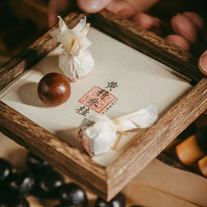 古制手工包(内含16丸/袋),外包装为食品级棉纸袋,包装上印有古法笺方,古朴雅致。