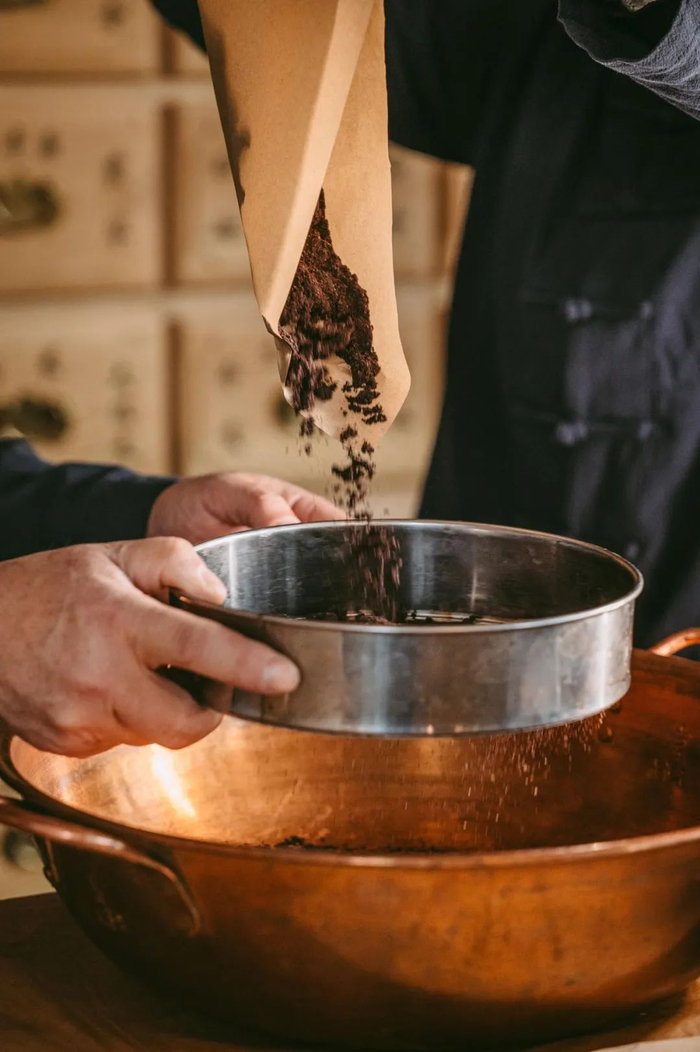 所有的原材料均炮制后研成粉,人工用粉筛筛至80目至120目,反复多次,直到粉末十分细腻。