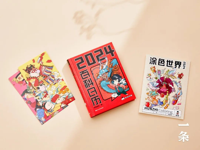 每本日历随赠混知原创涂色本1册,两款新年国潮红包,以及多款对联签章随机掉落,给你拆盲盒的乐趣~