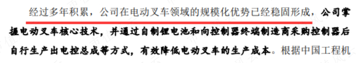从历年年报中,风云君可以大致梳理下公司布局电动新能源叉车产业链的情况。