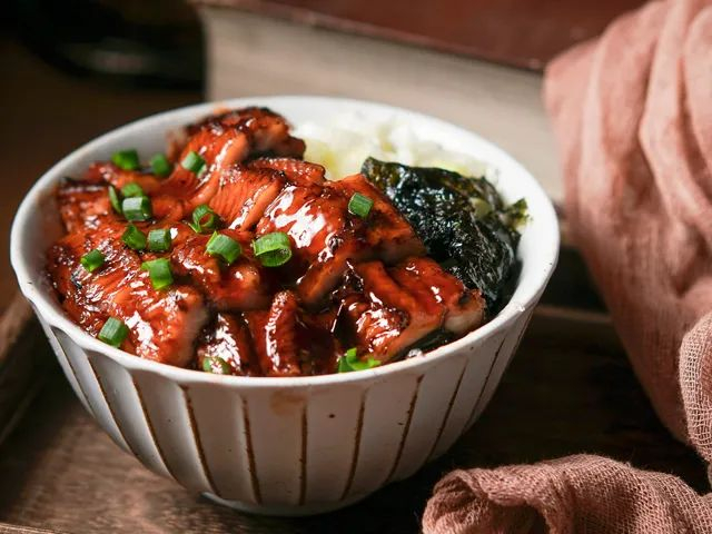 将鳗鱼外皮烤至金黄,裹挟着焦香,再淋上浓郁酱汁,一整片一整片地摆放在热气腾腾的米饭上,香软滑嫩的鱼肉入口即化,实在是令人回味。