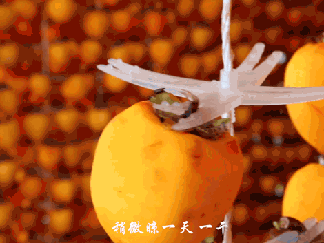 每当制作柿饼的季节,家家户户门口可见一串串整齐吊起来的柿子,如同一面面垂挂着的橘黄色珠帘。