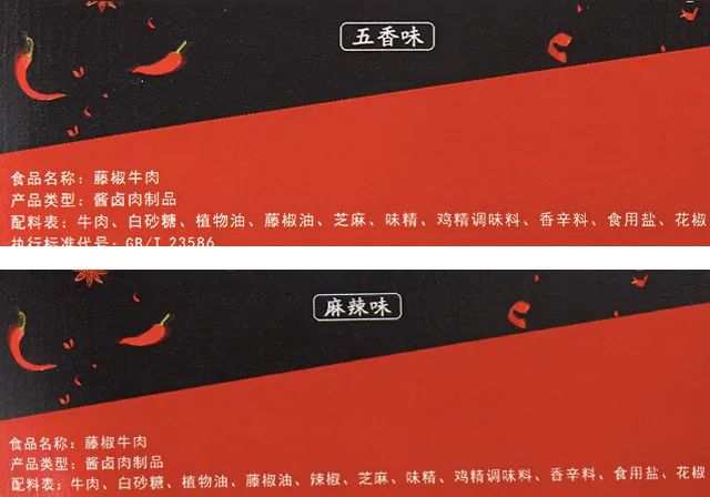 这款藤椒牛肉干有2种口味:五香味、麻辣味,可满足不同的口味需求。