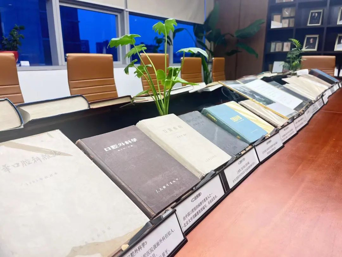 比如,每一间会议室都是以全球知名的牙科专家命名的,木质会议桌的正中央摆满了口腔领域的经典之作:全国最早一批口腔医学教材、1954年出版的《牙科材料学》;从拍卖场上买回来的国内知名口腔医院创立时的往来信函和批文;1976年的北大口腔医院的挂号单......