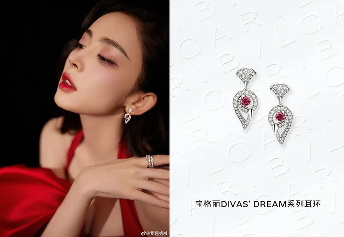 珠宝均来自宝格丽,包括Divas’ Dream系列耳环和SERPENTI VIPER系列戒指,没有抢红裙的风头,点精度刚刚好。
