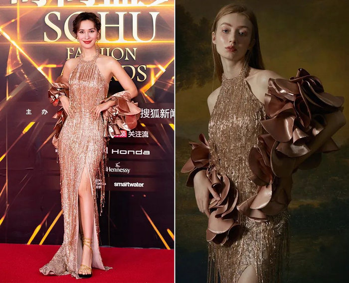 卢靖姗当晚获得了年度时尚表现力女艺人,她的Look很有20年代社交名媛feel。品牌来自SELENE CHOW(和吴宣仪领奖的礼服同一品牌),香槟金流苏礼服在灯光的照射下显得流光溢彩,如果发型再复古一点就更美啦~
