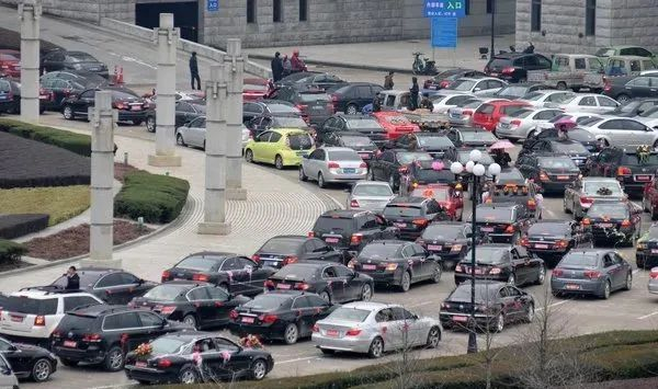 不管是劳斯莱斯还是宾利,公交车还是拖拉机,只要被用作婚车队,都得到市政府门前打个照面。碰上好日子,市政府门前就是一场声势浩大的车展。