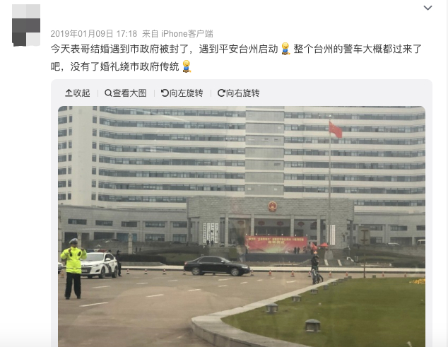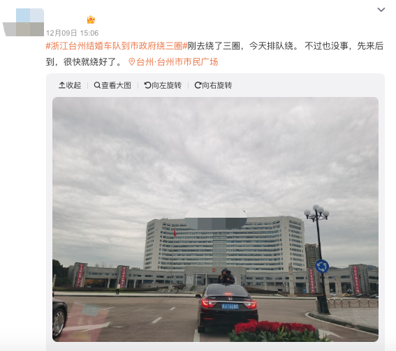 还有台州其他地方的人站出来说,他们结婚的风俗是各绕各的,椒江区的绕市政府,黄岩的绕黄岩区政府。