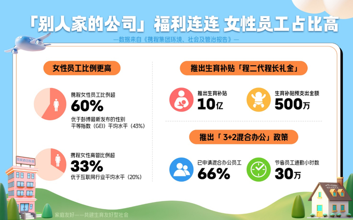 为此,携程推出了10亿元的生育补贴、500万的生育补贴预支出金额。今年6月30日,携程集团宣布,推出针对全球员工的生育补贴政策——“程二代程长礼金”,缓解员工的生育养育压力。