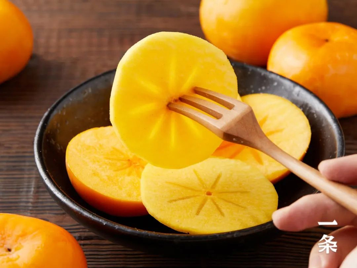 甜脆柿不同于软柿的绵软甜腻,其独特的鲜甜口感混杂香甜的汁水,能让甜蜜感直接从嘴唇沁入喉咙,绵长清爽,萦绕舌尖。