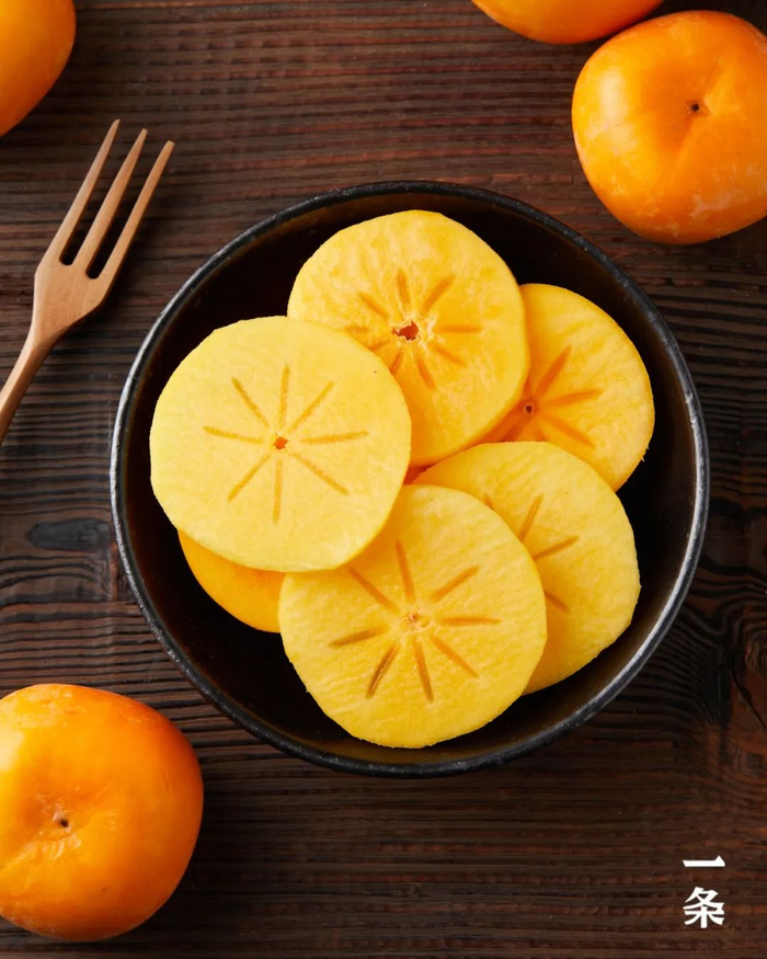 洗净一颗,削皮切片,立马解锁一道限定的秋冬时令美味,已经脱涩过的甜脆柿无涩无核,一口一口嘎嘣脆,根本停不下来~
