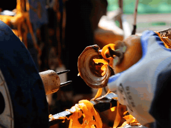 由于柿皮含大部分鞣酸,不仅口感发涩而且吃了对身体不好,因此每一个柿子都要用刮刀刮去外皮,外皮去除干净,才能上架晾晒。
