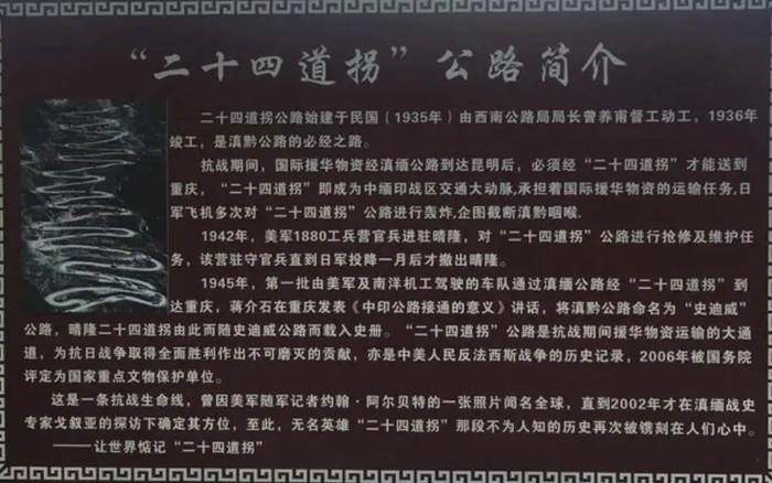 贵州晴隆县有一段名为“二十四道拐”的公路,曾是抗战时期将国际援华物资运往重庆的唯一陆路通道。