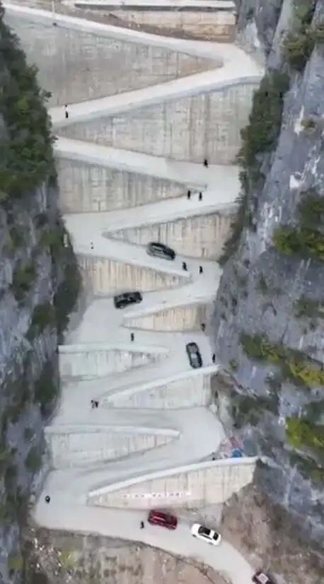 重庆巫溪令牌石公路,也被称为“拉链公路”,400多米18个弯