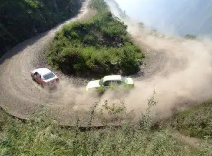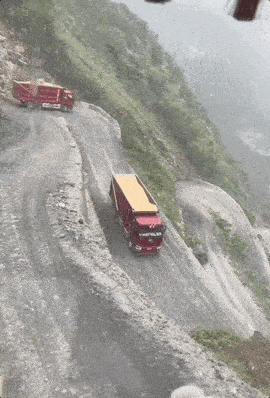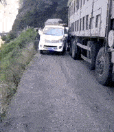 “中途遇到会车,那条路最多四五米宽,左边万丈深渊,右边是靠壁的深沟,对面那辆货车几乎半边轮子压在悬崖外,慢慢挪过去了。”