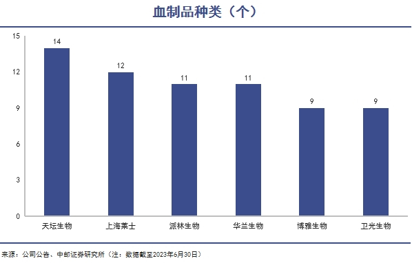 如今,上海莱士可提取的产品种类达到12个,仅次于天坛生物的14个。