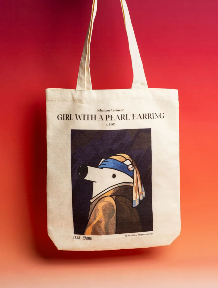 知乎吉祥物刘看山cos名画——维米尔的《带珍珠耳环的少女》。