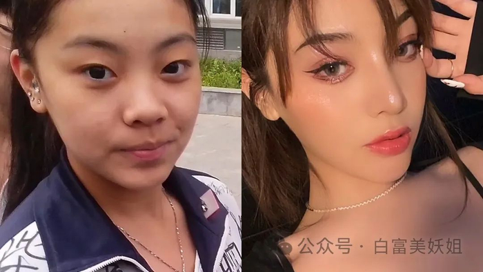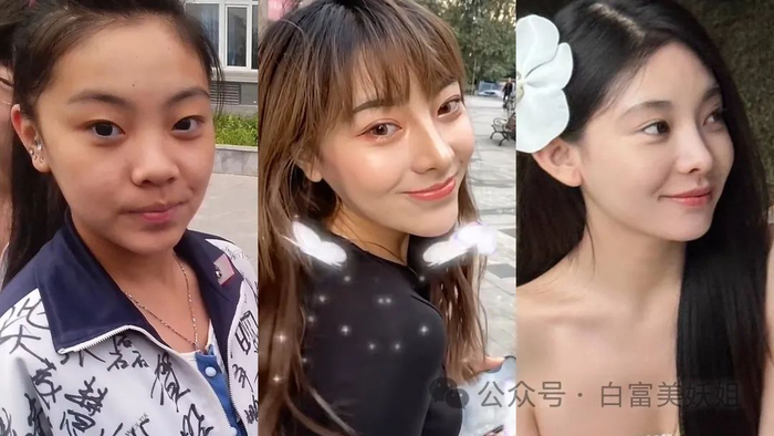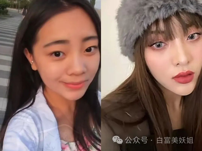 她变美的第一步选择的是眼睛、鼻子、尖下巴、小脸,一整套把自己搞成了成熟御姐。