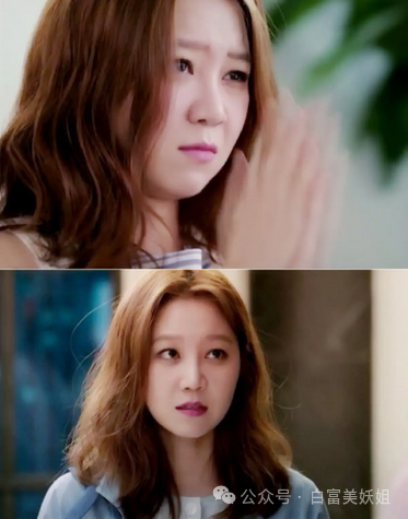 她提升化妆技术,改变妆容,把高挑眉改成弯度适宜的细眉,弱化眼线,进一步降低凸眼球的存在感。注重面部色调的和谐,抛弃大面积亮片,换成了清透自然感的妆容