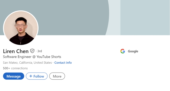 LinkedIn个人资料显示,Liren Chen是谷歌的一名软件工程师,致力于YouTube Shorts推荐算法。而Xuanyi Yu的LinkedIn个人资料也显示,她也是谷歌的软件工程师,之前曾在亚马逊工作。