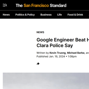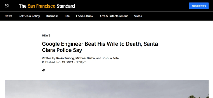 没错,据The San Francisco Standard(旧金山标准)新闻网1月19日报道,圣克拉拉警方表示,谷歌华人工程师(男方)将其妻子殴打致死,犯下谋杀重罪。