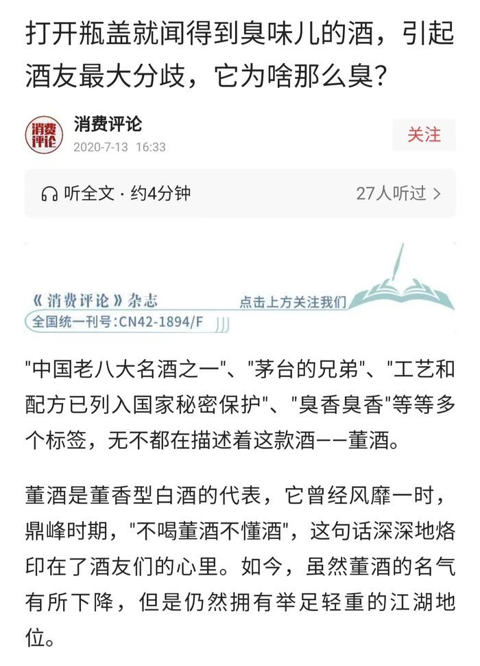 消费者:董酒主打一个“臭”字?