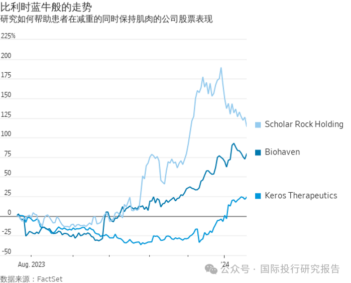 投资公司Eventide Asset Management的医疗保健分析师Brian Chow说,提高减肥药的安全性和改善副作用尤为重要,因为目标市场非常大,近一半的成年人都可能适用。研究此类药物重新利用的上市初创公司有Keros Therapeutics、Biohaven和Scholar Rock。每家公司都在以不同的方式研究肌肉抑制素通路,但它们都有一个共同的目标:证明人们可以在保持肌肉量的同时减轻体重。