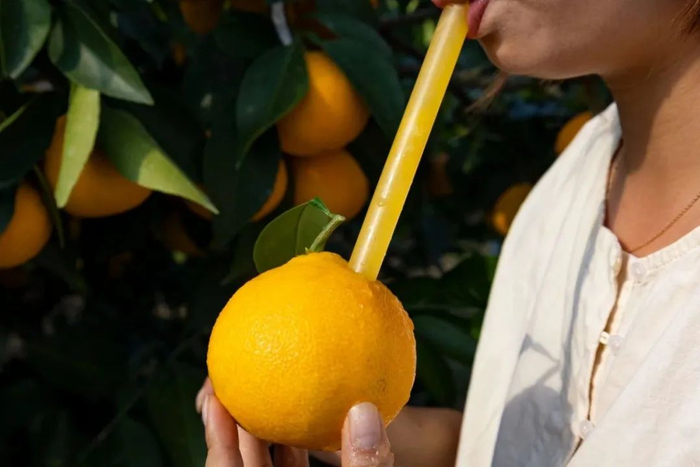 不仅如此,小编从当地果农那里了解到,红美人可以直接用吸管喝,可谓是天然的橘汁饮料,方便又解渴!