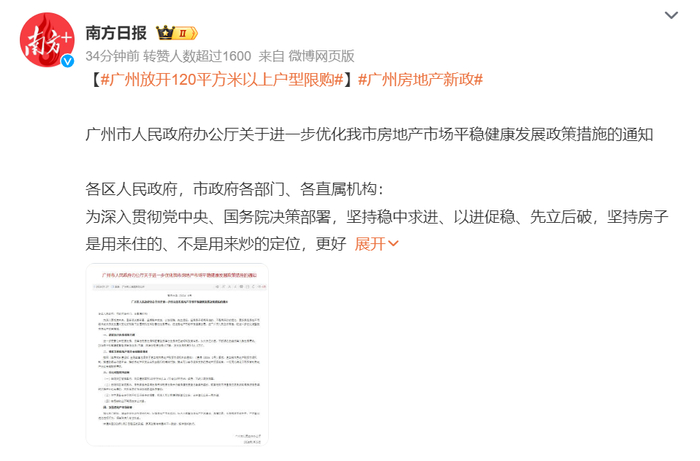 凡是在广州购买120平以上的房子,不管是买在增城、南沙,还是买在天河、越秀,通通不限购,拿钱就能买。这基本上宣告,广州已经不限购了。因为去年的9月份,广州就解除了番禺、南沙、增城、黄埔、白云等区域的限购,还免除了购房增值税。此次则是进一步解除了天河、海珠、荔湾、越秀四大核心区域的购房限制。
