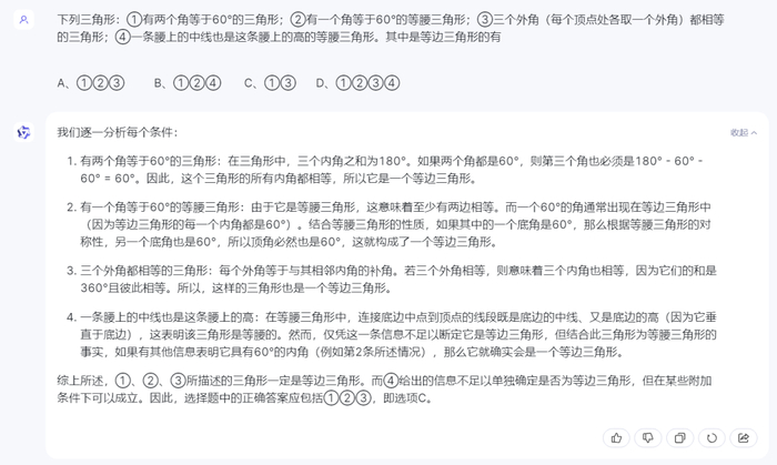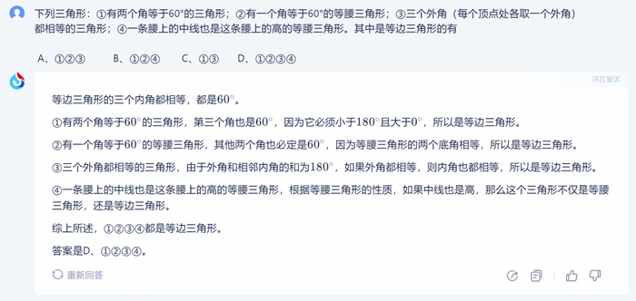 星火并没有受到扰乱,给出了准确的回答,还附带有详细的分析。