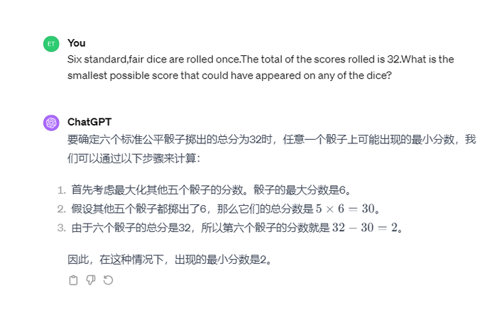 GPT的回答和通义千问一样,也是只给出了答案,没有其他介绍。