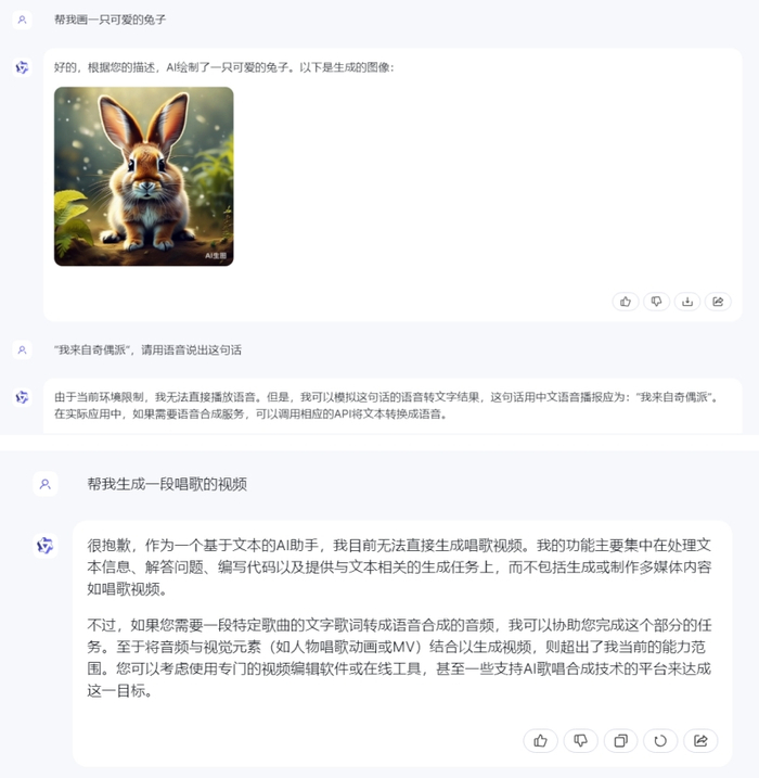 在语音交互能力之外,多模态能力发展之处实际上是“以文字形式输入,以XX形式输出”。于是我们对文生图/视频/音频的能力分别做了测评。