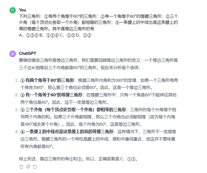 GPT的回答则介于“普及向”和“老师向”之间,没有每个选项逐个分析,但综合一句话可以概括。