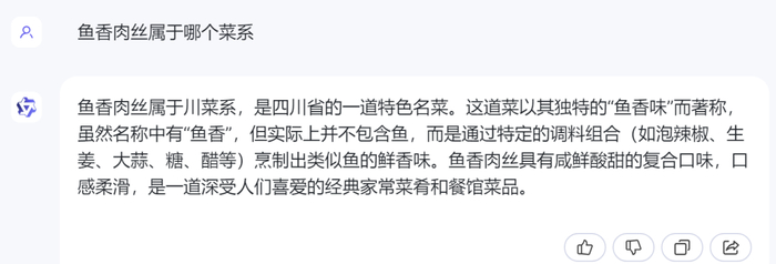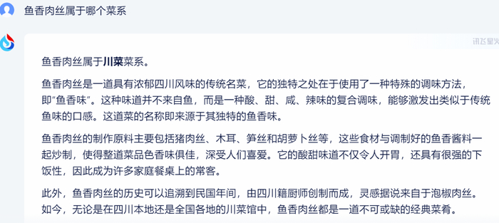 文心一言的回答正确,且进一步将所属菜系、原材料、烹饪方法等都介绍了。