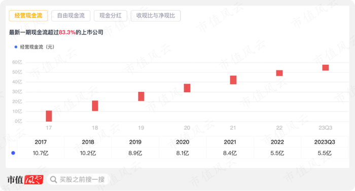 歌华有线虽然利润在下滑,但经营现金流还是不错的,每年都是正的。