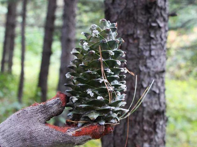 一棵红松,要生长50年后才开始结松塔,松塔里面的松子又需要2年的成熟期,十分珍贵。