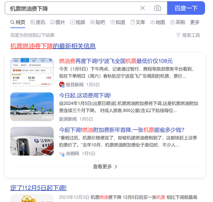 面对这种情况,行业也在尝试采取积极措施,年底,“机票燃油费下降”、“航司发布新规,退改费率下调”等词条频繁登上热搜,航司对顾客的渴求溢于言表。
