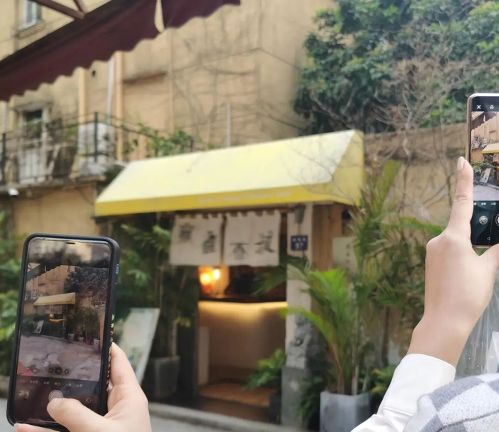 来到Lily店里的返乡年轻人,几乎都是从小红书上刷到她的,这段时间,店里有70%的客人都是返乡年轻人,有人一到店里就会和她说,“你这和北京/上海/杭州/深圳的餐厅好像啊”。不少人都会做的一件事,就是拍照打卡,有的前来聚会的朋友,还会拜托店员或者隔壁桌客人帮忙拍一张合影。
