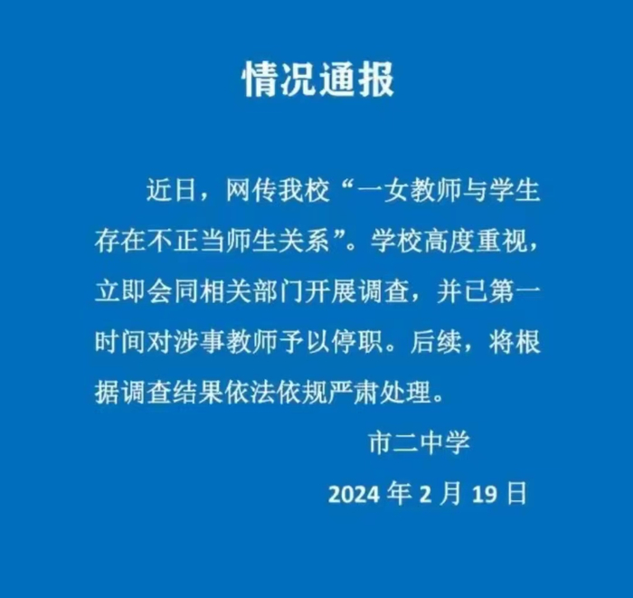 也真难为学校了,连全称都不敢写,公章也没好意思盖。但并不影响这份通报的真实性。经求证确实涉事教师已被停职接受调查。