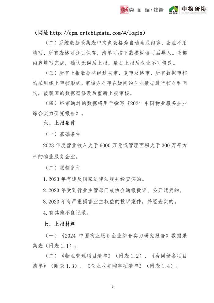 (四)终审通过的数据将用于撰写《2024中国物业服务企业综合实力研究报告》。