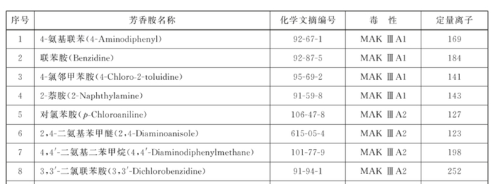 其二,仅有约200种偶氮染料,会在正常的人体温度、湿度条件下就能与人体的代谢产物混合,发生还原反应,并释放出致癌芳香胺。2019-2021年,上海市质量监督检验技术研究院曾对布料、服装、床上用品以及运动护具等各种类型的纺织品进行检测,就检测到使用的偶氮染料会释放出4-氯苯胺、联苯胺、2,4-二氨基甲等多种致癌芳香胺。