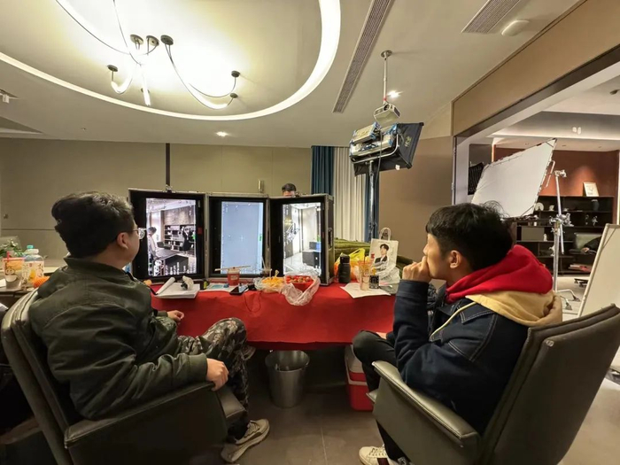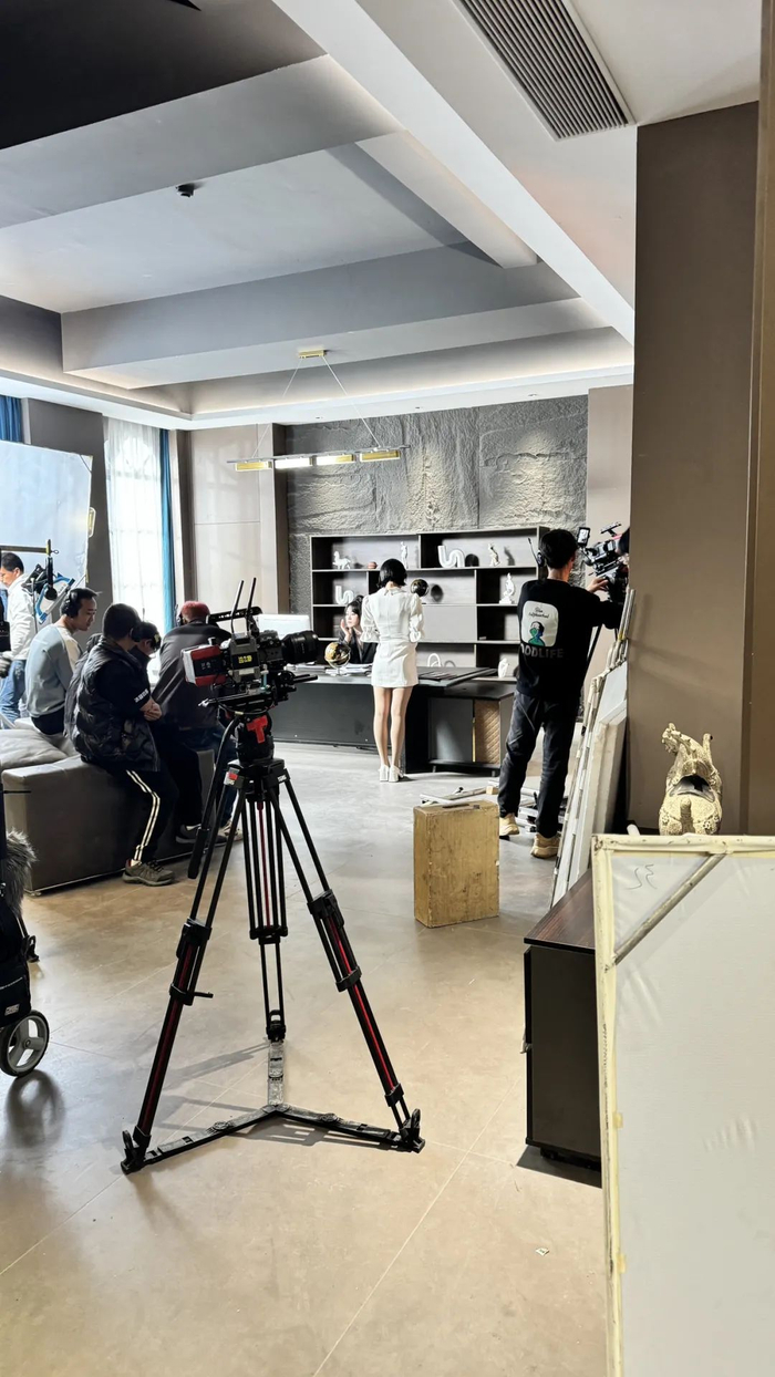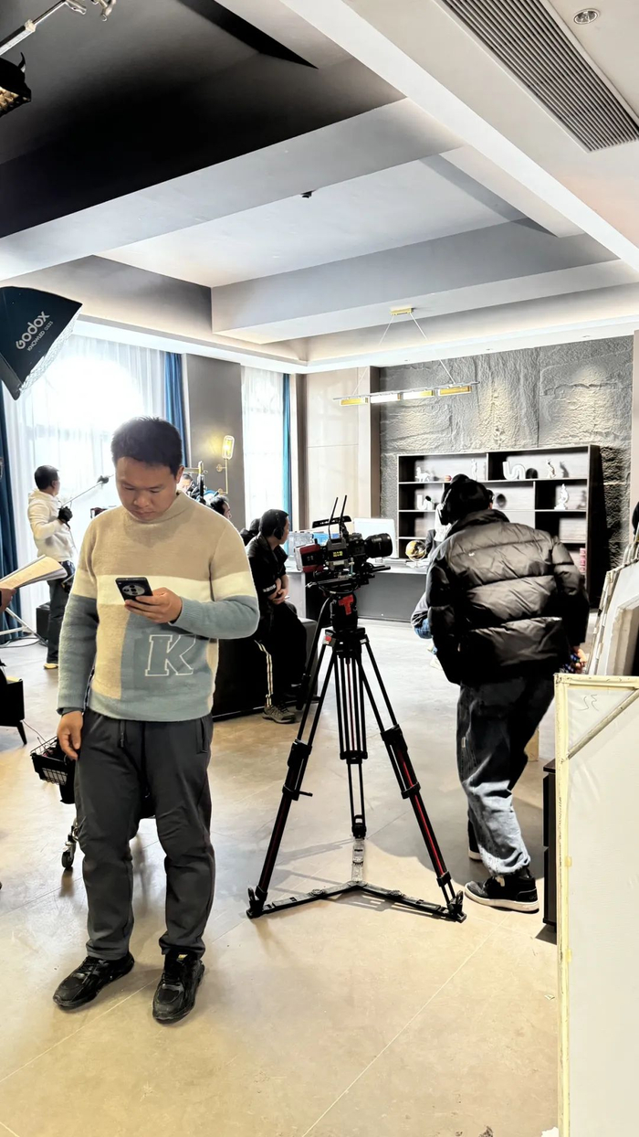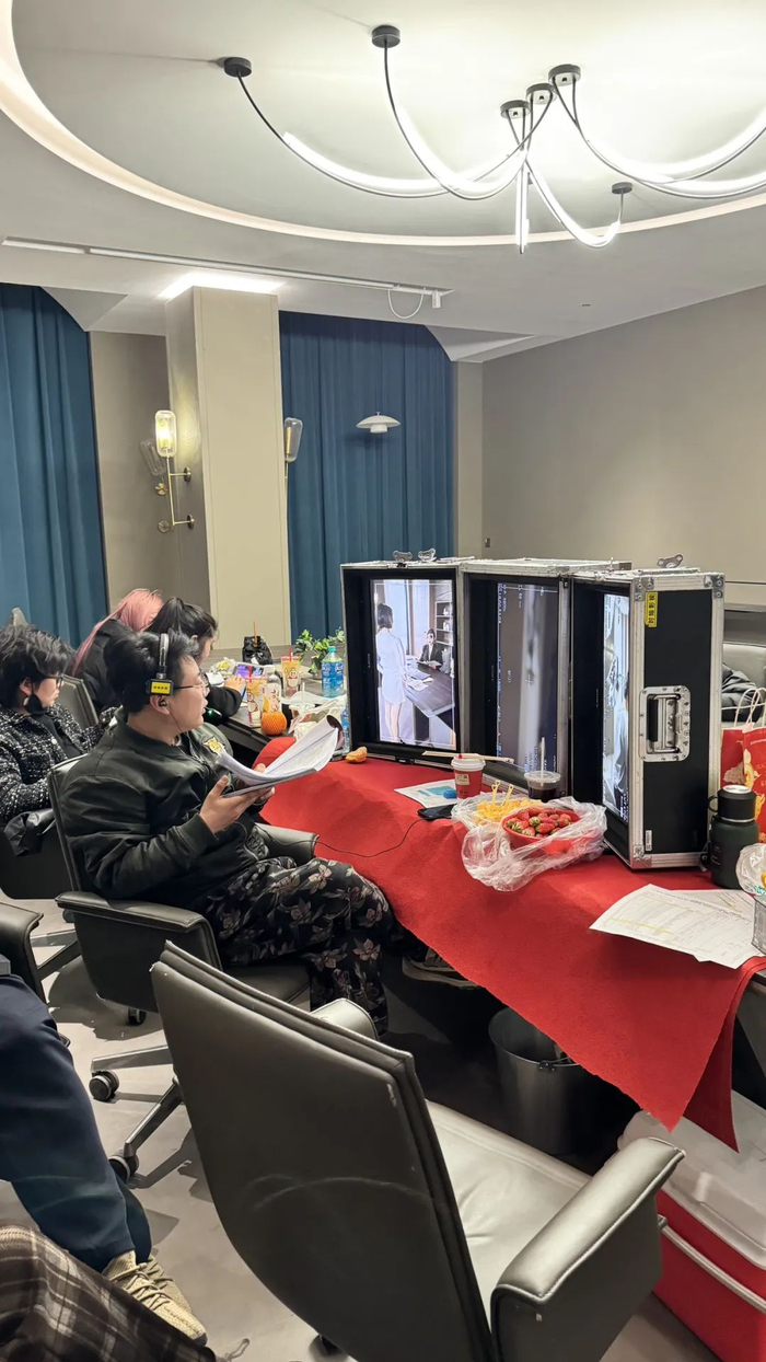 我们随后赶往横店探访最后一站,和高亚麟老师有关的短剧工作室,负责人吴晴正在和导演开会。