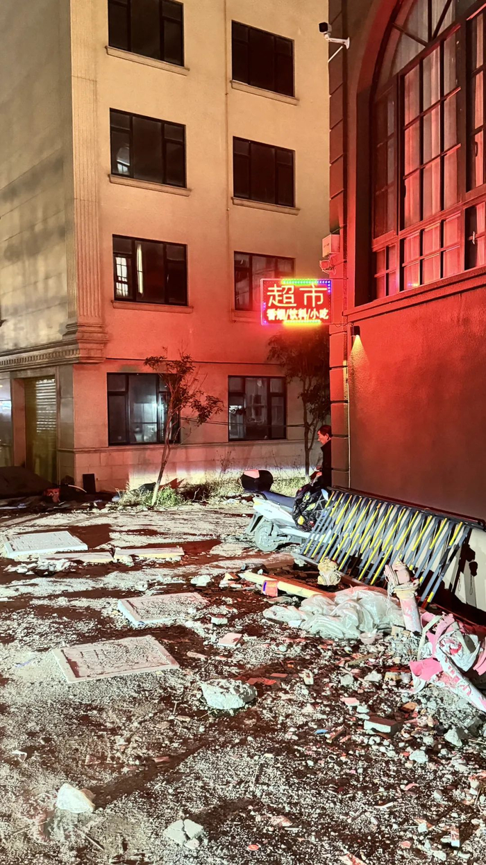 超市可能是片场的夜晚最有希望的场所了,给人带去补给和希望。从地上的砂石可以看出,这个片场确实是刚交付不久。