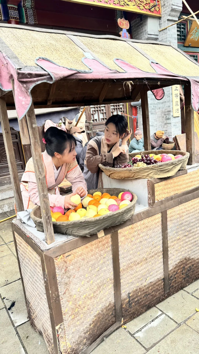 继续前行,估计是当天最豪华剧组,租了一条20米的古街,竟然有十来个群演摊贩。