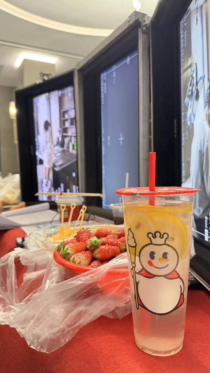 导演的福利不错,有草莓等水果,雪王也驾到了。