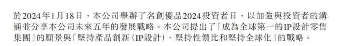 名创优品不是没有自创IP的野心,在财报中,名创优品提出“成为全球第一的IP设计集团”。