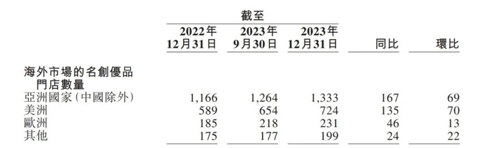 门店数量方面,截至2023年12月31日,全球达到6413家,同比增长973家。