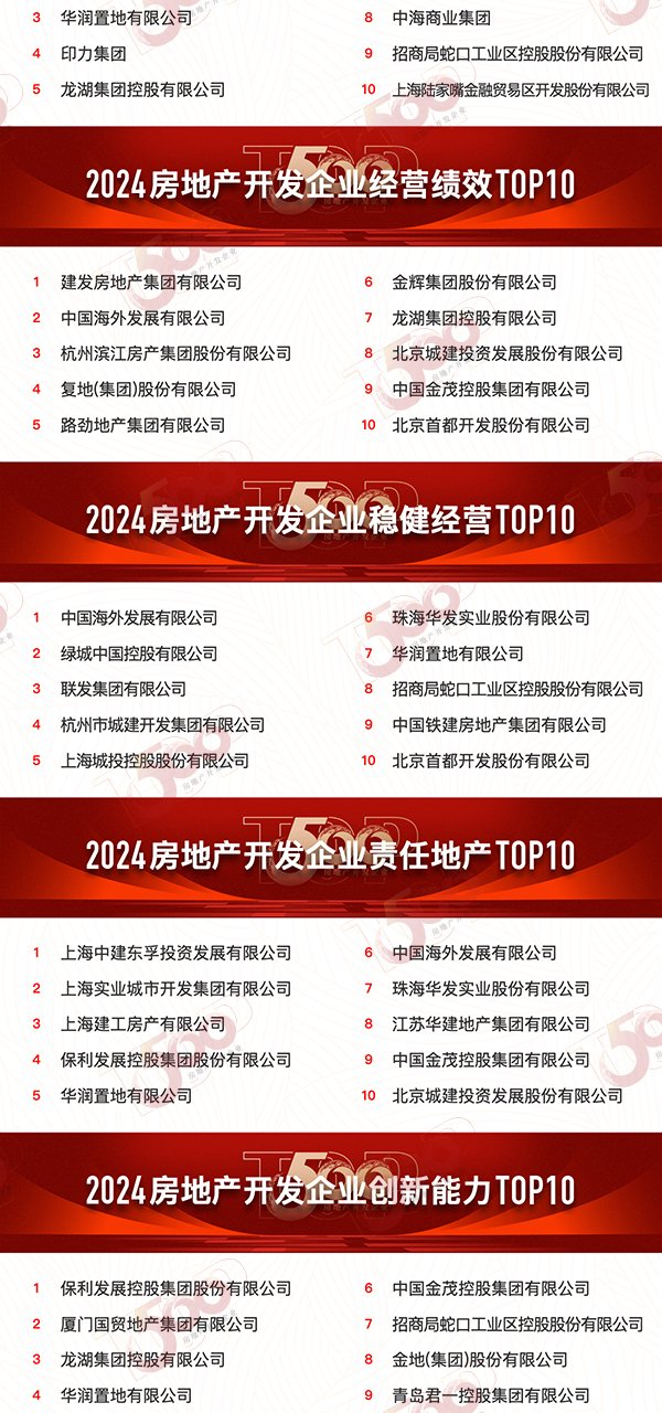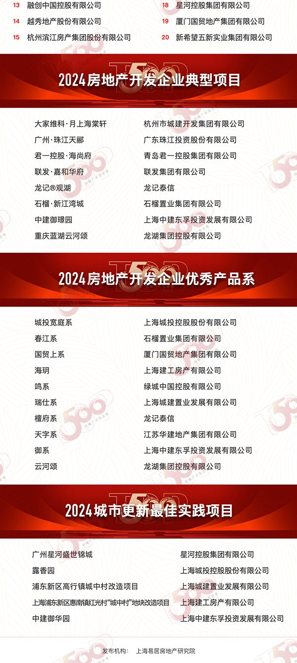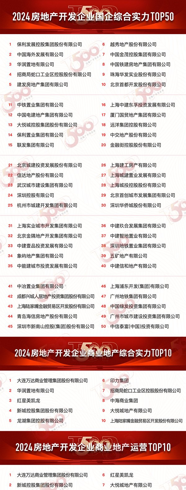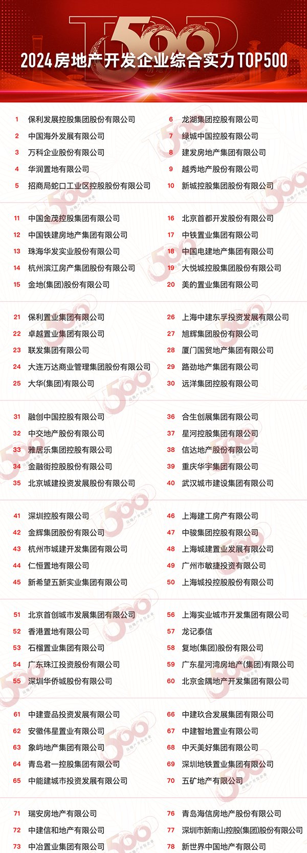 3月20日,2024房地产开发企业综合实力测评成果正式发布,备受关注的“房地产开发企业综合实力TOP500”等测评榜单揭晓。这项由中国房地产业协会、上海易居房地产研究院共同主办的测评工作,已连续开展16年,相关测评成果已成为全面评判房地产开发企业综合实力及行业地位的重要标准。