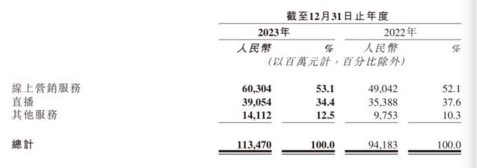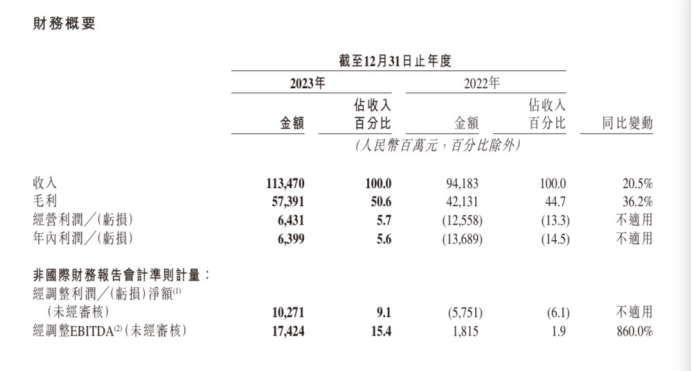 也正是在各业务上升之下,快手才得以将总收入由2022年的人民币942亿元,增加20.5%至2023年的人民币1135亿元,突破千亿营收大关。